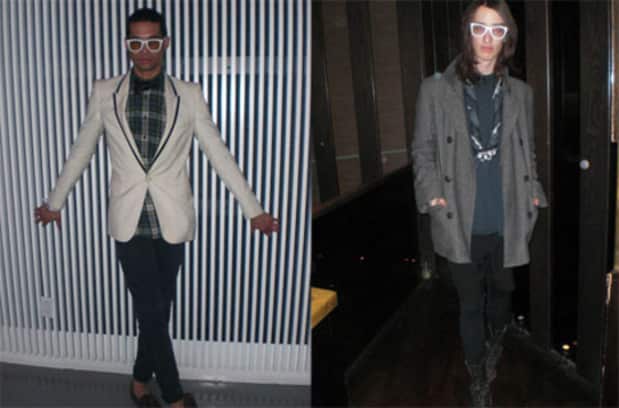 Recently we've noticed a lot of dudes recycling the white-rimmed Ray-Ban shades they bought last summer, throwing in some eyeglass lenses for a '09 update. This look definitely lends itself to certain degree of monochrome stylization—cue black bow tie and jazzy white tuxedo jacket! But there are chiller ways of nerding out too: beat-up and battered army boots or baggy shorts layered over long johns put a little Kurt Cobain on your Pee Wee Herman.