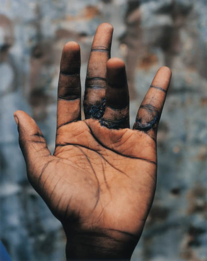 As we loiter with the trio in the parking lot of their nondescript office complex, a Toyota pulls up and, without fanfare, Mavado gets out of the passenger seat while Busy Signal climbs out from behind the wheel. As the members of Daseca mug for a few photos, Busy and Mavado stand by and crack on Daseca’s clothes, their poses, their green self-consciousness, the two deejays carrying themselves in person as they carry themselves on record: Busy is animated, smiling and bubbly, while Mavado keeps largely quiet, the crown of his head tilted down as he gingerly eats grapes and pineapple from a black plastic bag while trying to keep the acidic juices from running onto his heavily bandaged hand. Down by the knuckles, freshly dressed cuts run out from under the white dressings, and you can see the threads of stitches and the tiny knots where each is tied.