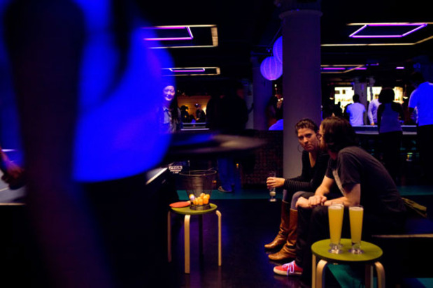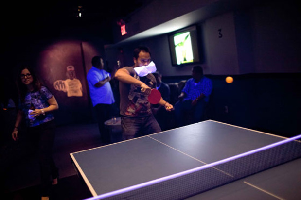 If you think you have seen everything then we are very likely to be like, OH YEAH WELL HAVE YOU SEEN A DUDE WITH A LIGHT-UP SHIRT POWERED BY A BATTERY PACK PLAY PING PONG AT A SUBTERRANEAN CLUB WHILE DAMON ALBARN AND SUSAN SARANDON AND JUDAH FRIEDLANDER AND KANO FROM UK GRIME AND MACEO FROM DE LA SOUL AND MICK JONES AND PAUL SIMENON FROM THE CLASH ARE WANDERING AROUND? And then you will probably say yes, because there were a lot of people, including probably you, at SPiN for the combination Gorillaz afterparty slash next installment of our very own Table Dance series. We have no way to express how much less weird this would have felt if it was just some random non-table tennis related club. Helped along by complimentary Red Stripe and Bushmills, as well as jams from our bro DJ Rezound as well as, um, Maceo from De La Soul, just chilling and playing nonstop hits, we managed to rage until the early hours of the morning before coming outside and being blown away by the line to get in. Can someone make an action movie about this? Can Vin Diesel be in it? Does that already exist? After the jump, check out some photos from the evening.