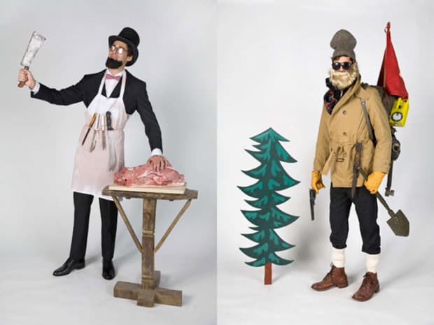 Now it's about to be 2011 and company after company has chomped their swag. What seemed like a subcultural phenomenon has now become a marketing tornado. So what's a brand to do? Satire, it seems. Freemans and Tim Barber have collaborated on a new look book that pokes fun at all the stereotypes that have overwhelmed the city of late. There's a classic pre-war butcher spoof and an easy take on the urban woodsman, but after the jump check out their renditions of the bike messenger and Whole Foods yuppie as well. Not sure how this will play with their demographic, but someone had to do this. (via HypeBeast)