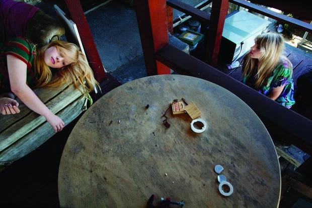Puro Instinct are spending their summer touring with Ariel Pink, trailing behind him in a van with their newly fleshed out band. It’s a risk for a new group, and even more of a risk for Skylar, who at 15 can’t even legally be inside most of the venues they’re booked to play at. “My sister is definitely on an accelerated evolutionary path,” Piper says, an epic no duh about a girl barely in her teens writing guitar parts that hold the emotional weight of a full-grown adult. She also says Skylar loves Ariel Pink and only wanted to tour because it was with him, so they’re heading out with ten songs and less than two years under their belts. Whatever happens, come fall Piper will still be hanging with her dog, Skylar will be back at school, Puro Instinct practicing, returned home to the mythological city that birthed them.