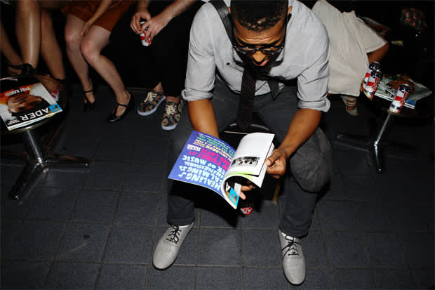 Last night was backyard-perfect, bright and warm. But we spent it inside, in a dark former strip club near the river with a whole bunch of friendly people, a lot of whom helped make FADER #74 happen. The cold Budweiser was served in seasonal flag cans, and Max Glazer and Dre Skull—perched on top of the old walking runway—took turns manning the soundsystem. It was a midsummer family affair, and the dancehall was full of love. Check out the scene: