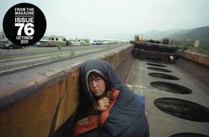 Mike Brodie is settled in the sense that he rents a room that has a closet with clothes hung up, a bookshelf and a radio, but his mind is always moving. The Pensacola kid who got famous snapping Polaroids of coal-dusted drifters getting loose is now a railroad mechanic, repairing fuel injectors on the graveyard shift at a port in Oakland, California. When the traffic dies down on the nearby harbor streets, Brodie and his crew drive service rigs out to the edge of the yard and watch street racers ripping through tungsten-lit exhaust fog on motorcycles until the cops show up to send them home. It’s been more than a year since his last train ride and he doesn’t take too many photos lately.