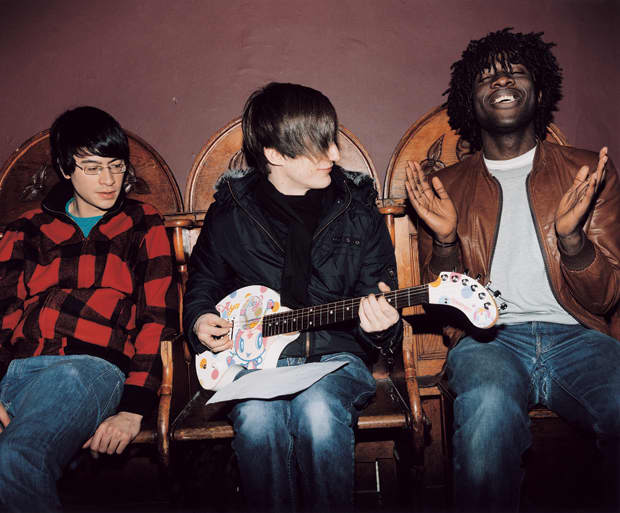 Talking about his music one-on-one, Okereke is serious and reserved, perhaps even a little uncomfortable. But with the rest of the band, the singer is incredibly animated, much more in line with his lightning-bolt stage presence; chalk it up to Bloc Party's chemistry as a collective. Okereke always knew he wanted to make music; but it was not until a few years ago that he found his counterpart in quietly intense Russell Lissack. "I met Russell—I was at school, he was on the dole," he explains. "We played guitar together for a year writing songs in the front room of his house." The two found bassist Gordon Moakes through a classified ad listing "Sonic Youth, Joy Division, Pixies, DJ Shadow" as influences, and somehow recruited Matt Tong on drums months later. Several terrible band names (the Angel Range, Diet, Union) were shed as Bloc Party came into existence and figured out its sound. "There's a club in the UK called Trash that was really important in the origins of Bloc Party," Okereke says. "I'd go with Matt and we'd hear all this dance music we had never heard before at the same time as the Cure and Madonna or something. There was so much music—it was impossible for that to not affect what we do."