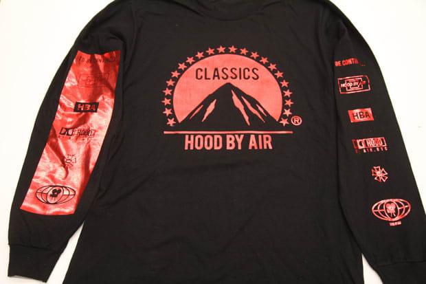 Shayne Oliver of Hood By Air stopped by our offices yesterday fresh from the printers with samples of his brand new Classic Tee. Available in devilish red and iceberg blue, we love a good long-sleeved crewneck, and HBA's ode to the logo for Paramount Pictures is a truly creative, understated use of shiny, reflective decals. They're not for sale just yet, but should be hitting the streets in the upcoming week.