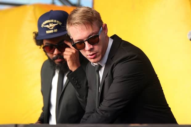 The day culminated in a hyper-stimulating Major Lazer extravaganza. Diplo and Jillionaire took to the stage at sunset in finely tailored suits. Dancers worked the crowd and confetti sprayed everywhere while bass erupted from stage-dominating tower speakers. Diplo got inside a giant plastic bubble emblazoned with a rasta-colored "ML" and walked on top of the audience. A bunch of girls hopped on stage during a bouncy new track from their upcoming LP Free the Universe, but were swiftly booted off by security. After running through "Pon De Floor" and "Get Free," Major Lazer closed with Damian Marley's "Welcome to Jamrock," fireworks twinkling and crackling over the water as the final notes played out. Check out photos from the entire day of wildness below.