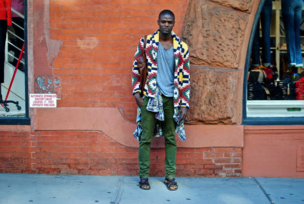 There's about two weeks left to wear sandals, and this guy had the mixy-matchy idea to merge the seasons by rocking his with a cozy sweater on top.