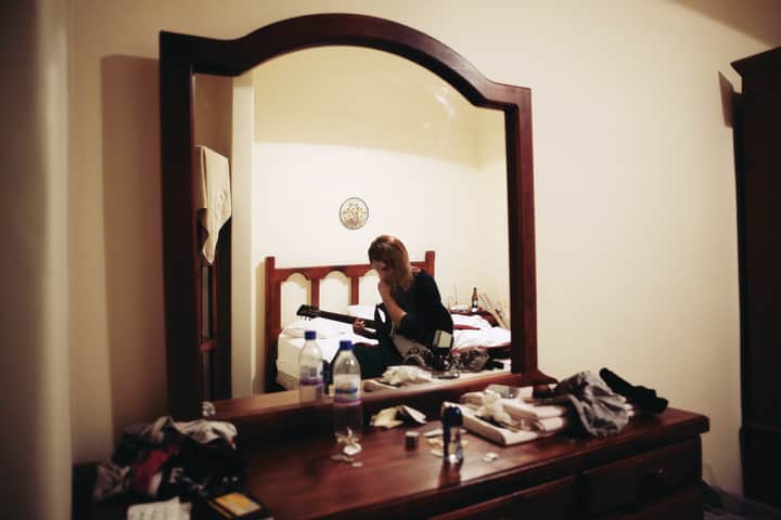 After 10 months in Paris, Parker returned to Fremantle, a small harbor city just outside of Perth, where he grew up, to begin working out the live versions of the album's tracks with the rest of Tame Impala—Jay Watson, Dominic Simper and Nick Allbrook, as well as new addition Julien Barbagallo, whom he met at a bar in France, and has since become Tame Impala's full-time drummer. In Perth, Parker is effectively homeless. When the band goes on tour again, he'll give up the house he's been renting, where it seems he doesn't ever eat, sleep or do anything but write songs. The place—filled with musical equipment, a tiny TV and clothes scattered all over the bedroom floor—looks more like a glorified storage space than a home.