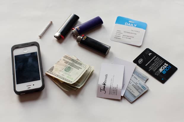 Big Boi, the spry 37-year-old with a new bowling trophy and an album on the way, stopped by FADER offices recently to talk about life on the festival circuit and his kids' football seasons. Our full conversation with Big is forthcoming, but until then here's the everyday contents of his cargo pockets: no less than three lighters and a partly-smoked machine-rolled joint. Not pictured: an intensely cracked and faded Georgia driver's license and a plushy green pillow pet for cozy travel.