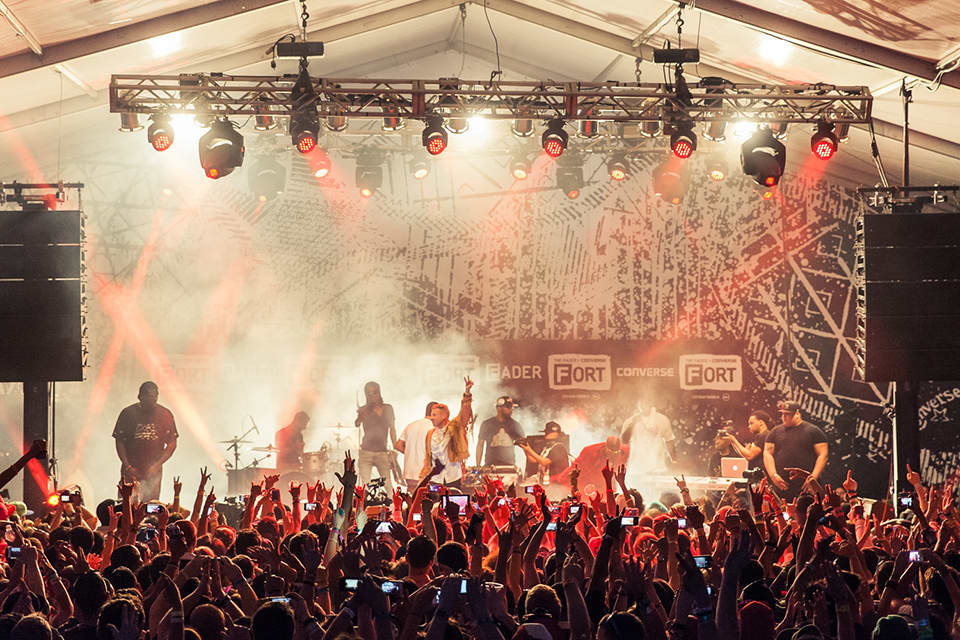 2013's FADER FORT Presented by Converse concluded over the weekend in Austin, with a drum-and-keys backed performance by French Montana and surprise appearances from Macklemore, Diddy and Bun B. Earlier in the day, Earl Sweatshirt did new songs while Flying Lotus DJed, GEN F artists Laura Mvula, GrandeMarshall and Fear of Men played, as did Delorean, inc. and Mac Demarco. Dell streamed the entire show live on LG screens around FORT and on TheFADER.com, while FORT-goers kept cool with drinks from Bushmills, Hobnob and vitaminwater. Thanks to everyone who played and hung out this year, and the sponsors that made it all happen: Converse, LG, Sirius XMU, Hard Rock, Glass Is Life, Kangol, FUSE TV and Joola.