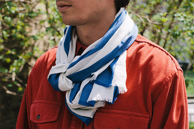 When walking the streets of New York, I prefer something a little bit more unique than, say, the practical gauzy linen ones I used to protect my face from dust while walking the streets of Kathmandu. This blue and white striped scarf from J. Press is classic. If I was a fashion editor maybe I'd say that it channels deep nautical vibes, but I'm a photographer, not a fashion editor, and the truth is I dress fairly simply and this is just a nice touch of color that's light enough for spring. And best of all, it's an everyday nod to my community.
