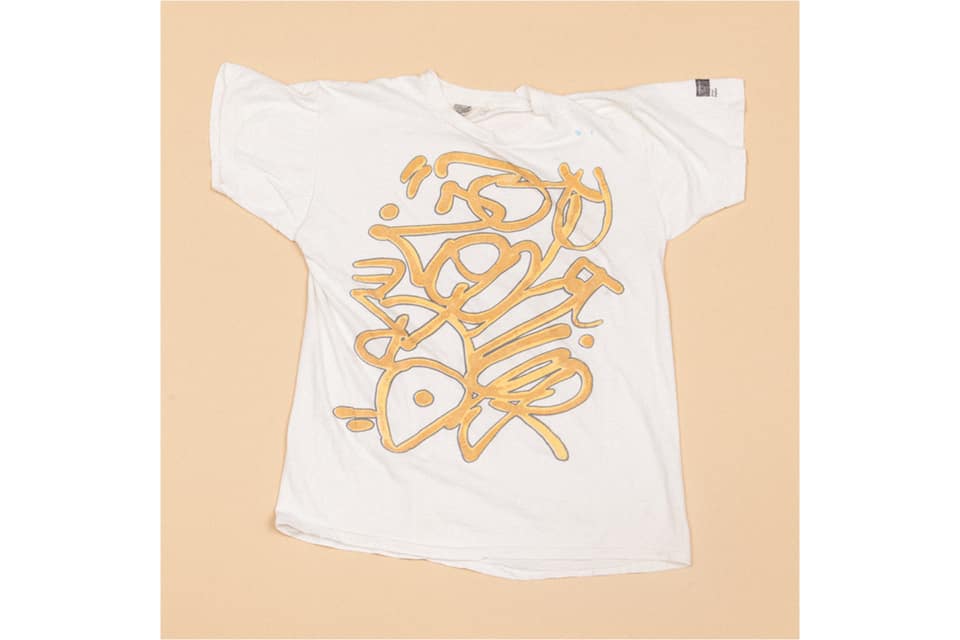 This was made in the 1980s for an exhibition at the Museum of Contemporary Art in Chicago. They were exhibiting T-shirts as a medium for art, so this was an actual art piece. [The shirts] were hand-done by individual artists and framed and exhibited at the opening. The guy that put it together was Willie Smith, who supported graffiti artists like Kenny Scharf and Basquiat and passed away from AIDS in the early ’90s. This shirt was done by Zephyr, a guy based in Jersey City who would come out and hit a lot of trains. He had an incredible hand style and was known for an elegant tag. I catch Zephyr’s old tag partner, Dr. Revolt, on the F train every now and then, and I asked him once about the shirt. He told me what I had was pretty rare.