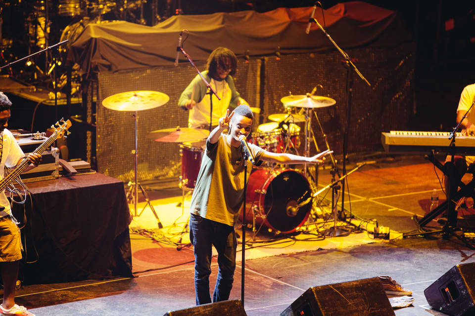 Only Mac Miller could bring together a lineup like this. The plucky Pittsburgh rapper has spent the past year making new friends, inviting various rising rap figures to his sprawling LA property to smoke weed and record for free—kind of like when Bart became the most popular kid at Springfield Elementary after Homer and Marge bought a backyard pool. His hobnobbing with the likes of Earl Sweatshirt, Schoolboy Q and Alchemist gave him creative energy, and helped him craft Watching Movies with the Sound Off, the darker, more experimental follow-up to his rosy-cheeked debut Blue Side Park. At Hammerstein Ballroom Tuesday night, Mac shared his bright spotlight with deserving guests: Vince Staples, The Internet, and Chance the Rapper all got to strut their stuff in front of a sold-out crowd of hormonal high schoolers. (For real though—security patrolled with flashlights when a few couples got too hot and heavy.)