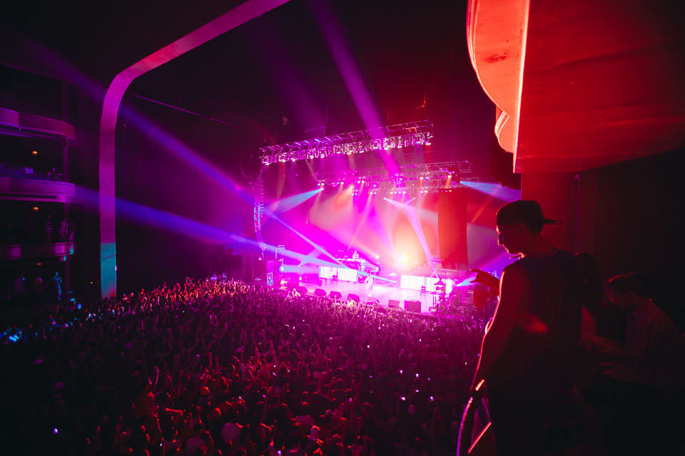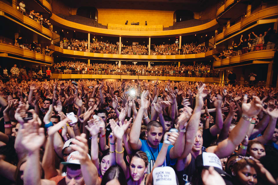 Soon, Chance the Rapper’s DJ took the stage to hype up the crowd, playing a stacked set of of-the-moment club anthems for the auditorium of teenagers. “Bandz A Make Her Dance” specifically prompted some JV twerking that made me want to wash my eyes out with soap. Thankfully, Chance suddenly burst on stage to “Good Ass Intro” with the animation of a Sunday pastor. He’d earned his stripes touring the country with Donald Glover in 2012, and it makes sense that he spent a few months opening for an actor. Chance is both emotive and explosive live, and his persona comes off as strong as it does on his acclaimed Acid Rap. Soulful “Cocoa Butter Kisses” was a crowd favorite, and Ab-Soul came out for the slow-burning bounce of “Smoke Again.” Shadows of Eminem and Kanye West loomed as Chance darted back and forth across the stage. He’s clearly at home in front of an audience.