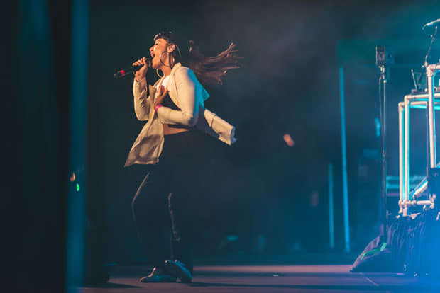 As Disclosure took the stage, fans waved cardboard fans boasting the duo’s signature white face outlines in anticipation. Disclosure have found success by draw from house influences while remaining accessible. As evidenced by their recent debut LP, Settle, their percussion isn't an afterthought to an over-produced radio chorus, like some radio-ready electronic music, nor are the hooks buried under shifting dubstep beats and bass drops. Live, slick dance floor tracks like “F for You,” which features Howard on vocals and a live bass for added effect, and the driving “When a Fire Starts to Burn” showcase how the brothers man that balance on the stage and with their audience. People aren’t afraid to dance, get lost—and sing along. And when the bass does drop, such as on “White Noise” featuring AlunaGeorge, it’s ecstasy.