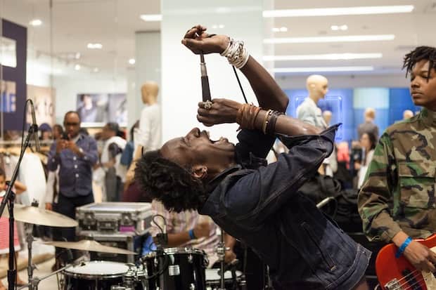 As part of GAP's national styld.by events yesterday, held in New York, LA, Chicago and more, they brought out Saul Williams, poet laureate of the hip-hop world, for a special performance in their store at 34th and Broadway. The party was co-presented by FADER, with Eater, Mashable and Refinery29, who provided a dessert bar, tweet wall and sweet T-shirt airbrushing station. We had a photographer on hand to capture the action.