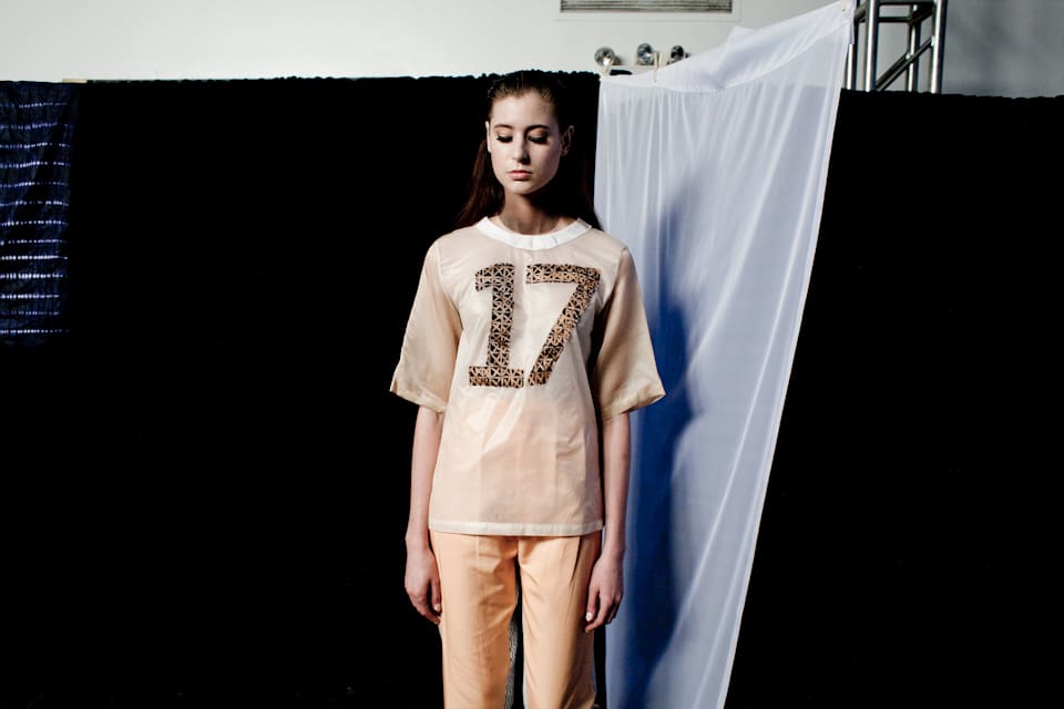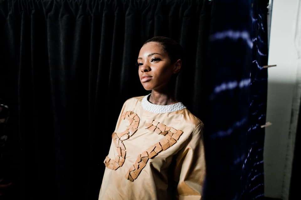 Sure, it’s great to look at clothes on the runway, but the true fun and hard work of New York Fashion Week goes on backstage, with designers, stylists, models and makeup artists running around to make everything on the stage seem effortless and easy. Nigeria-based designer Amaka Osakwe, with her line Maki Oh, presented a graceful collection that brought together football jerseys and fluffy chiffon. Backstage, we captured models receiving spray-on neck tans and polka-dot manicures, with hair by Free Your Mane and makeup by TEMPTU.