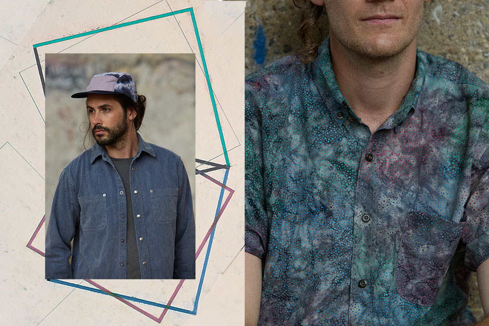 CAMMISA: When we had our pop-up shop for two months we wanted to show how we were influenced by fine art and find a way to bring in our own community of artists. We did our own artist collaboration series. The first was a hat collection with this artist Isaac Nichols, who's a good friend of ours. We went to his studio, tie-dyed a bunch of fabric, and then went to our hat maker, who developed an original pattern for us, cut the cap out of that custom fabric. At the pop up, we did an installation with his collage work and just put out all of the hats he customized for us.