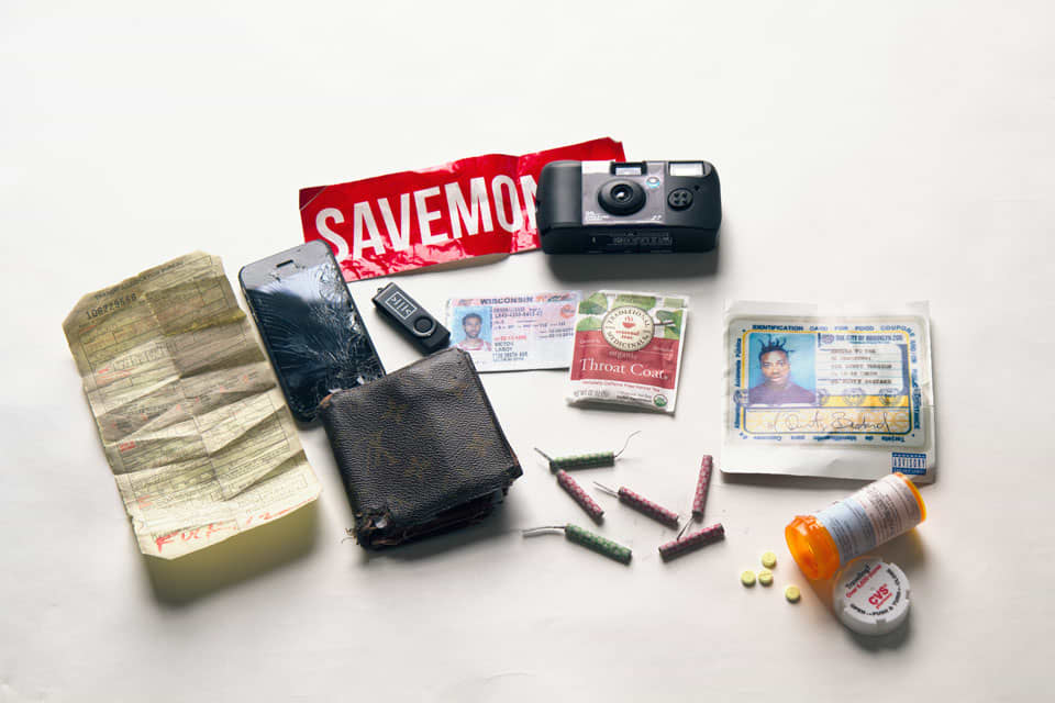 Vic Mensa is in New York for Scion’s monthly free concert series, Open Mic, with Ty Dolla $ign and Deniro Farrar. Earlier this week, he stopped by FADER offices for a lunchtime hang out. The contents of his bag made a pretty perfect picture of the artist as a young hooligan: a fake Wisconsin ID, turnstile-jumping citation, prescription pills, stomped-on phone, dog-chewed wallet and throat coat tea.