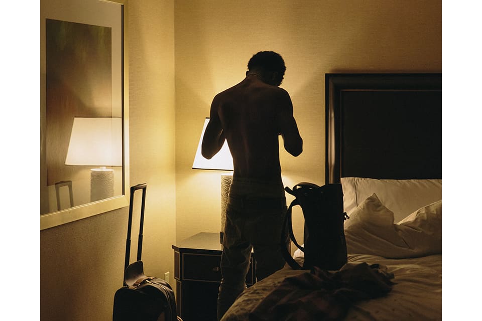 As soon as we got in Quan's rental car he was like, "Do you do drugs?" and he pulled out a blunt and we got high. Usually rappers front, and I remember he was totally natural and we got along really well. He kept on being like, “I fuck with you Ryan.” Quan’s a hardened guy, but he’s also in touch with his emotions and he’s open about that. I like the photos of him in the bedroom—they kind of mirror both of those things, like, here’s this cut dude with tattoos all over his body posing in really intimate ways. In my mind, it’s just pure Quan.