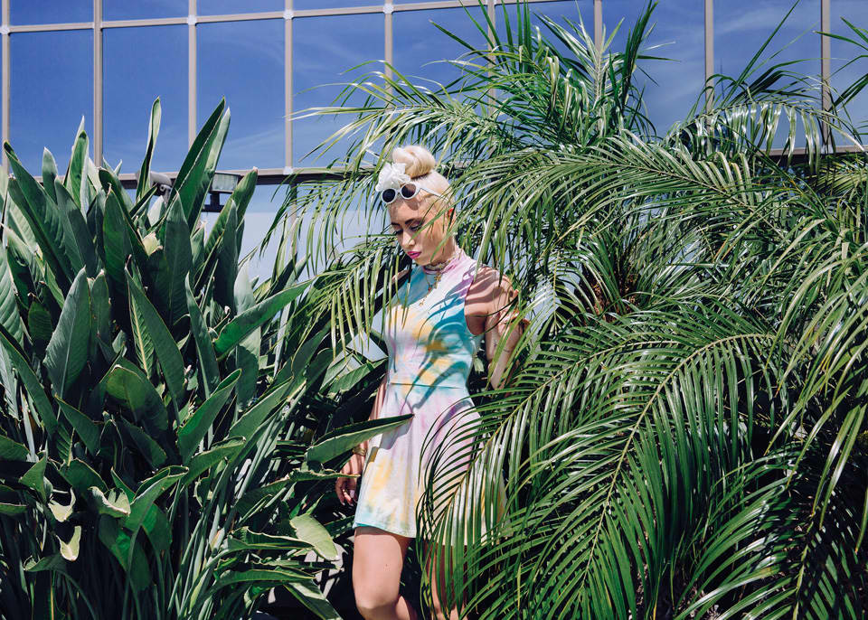 Still, Kali’s aggressively aware of image. She took up piano and saxophone after emigrating at 7 with her family to Alexandria, Virginia, but band practice eventually lost out to hours spent in the computer lab tinkering with video editing software. She credits this as “the most important thing that high school taught me,” and it makes sense. Her videos are pastel-toned montages of palm trees and hot cars—see the dreamscape “Table for Two” or the trippy vignettes of “Por Vida (Down For Life).” And her heavy-handed chonga look has gained her as many ogling eyes as ears—a Tumblr search of her name produces thousands of grainy photos and jittery GIF loops of her likeness. Regarding her loud aesthetics—part FKA Twigs, part Kreayshawn—she explains that she’s just an artist of her time. “I’m young,” she says. “I’m from the same generation of people that grab from the same inspiration and styles as me. I’m constantly progressing. My style is changing every day.”