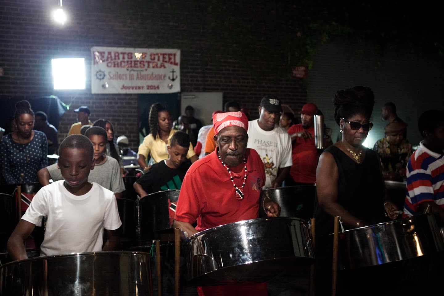 • Players of all ages practice side by side in preparation for J'ouvert Morning.