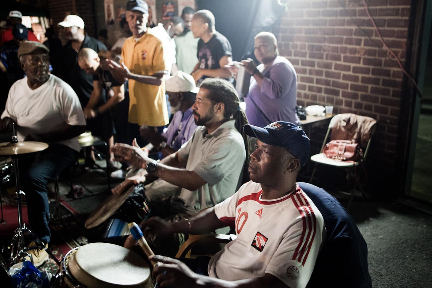• The iron, Congo drums and standard drum kit make up the 'riddim section.'