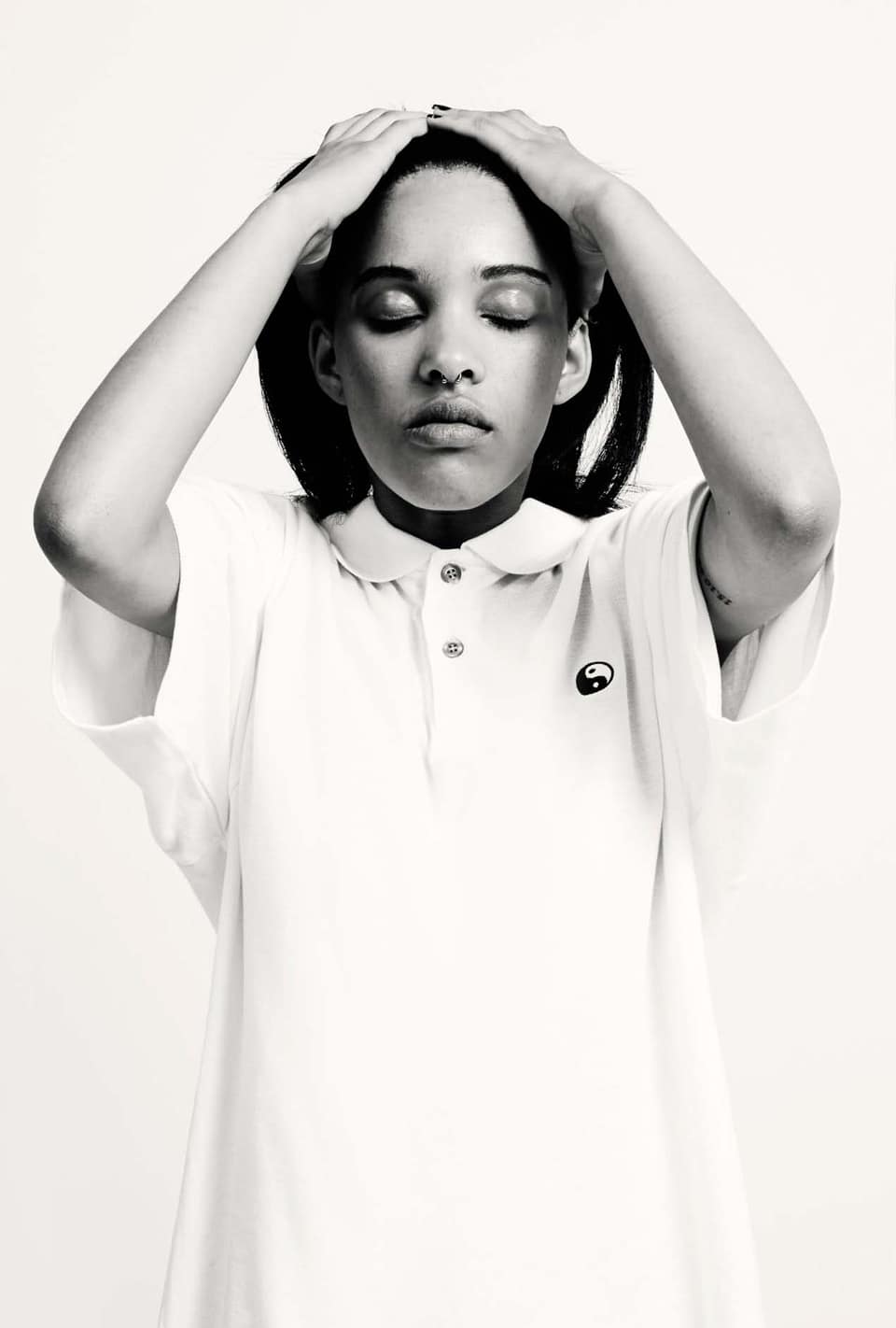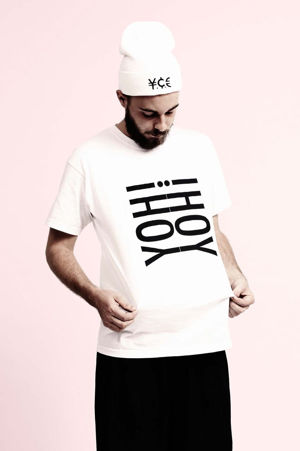 For years now, South African cool kids Patrick Visser and Raees Saiet have been throwing some of the best parties in Cape Town and Johannesburg under the YOH! umbrella. Their newest venture, a clothing line, bears the same name, and has the same sense of youthful exuberance, whimsical secrecy and sense of belonging. YOH! seems to have a symbol language all its own: various incarnations of ying yangs ring the neckline of a sweatshirt, monogram a polo shirt, stretch to fit the oblong eye sockets of an alien. Meanwhile, Euro, Yen, and US cent symbols dance across the pages of the look book and sprawl across the shirts, sweatshirts, tees, and beanies that define the line. United by minimal styling and the clothing's monochromatic shading, the look book also functions as a stark, emotive portraiture series of South African influencers. The video that accompanies the line has a similarly meticulous aesthetic language: the poetic clip has a tension and slightly de-saturated color palette that belies its shoe-string budget. It's clear from their output thus far that Visser and Saiet carefully curate their image and everything they touch, nothing about YOH! feels rushed, forced, or inauthentic. It's exactly the kind of club we want to join. See if you feel the same: watch the video below and peek through the visuals from the look book in our gallery above.