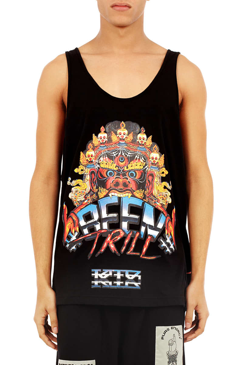 Neither UK natives Kokon to Zai (bka KTZ) nor Been Trill are particularly known for restraint, and their new collaboration is, predictably, kind of insane. Long-sleeved sweatshirts hashtagged "deepweb," matching skull-printed tanks and shorts, t-shirts with harnesses, hoods with eyeholes—all in all its a collection that feels frightfully appropriate as today is the first of October. The blend of the two brands' styles is like some kind of savage color-drenched dream, but also, somehow, still pretty wearable. Flip through the lookbook below and decide for yourself. But if full-on graphics are your bag, revisit our how to with former-Been Triller Heron Preston on the subdued look of rocking winter whites.