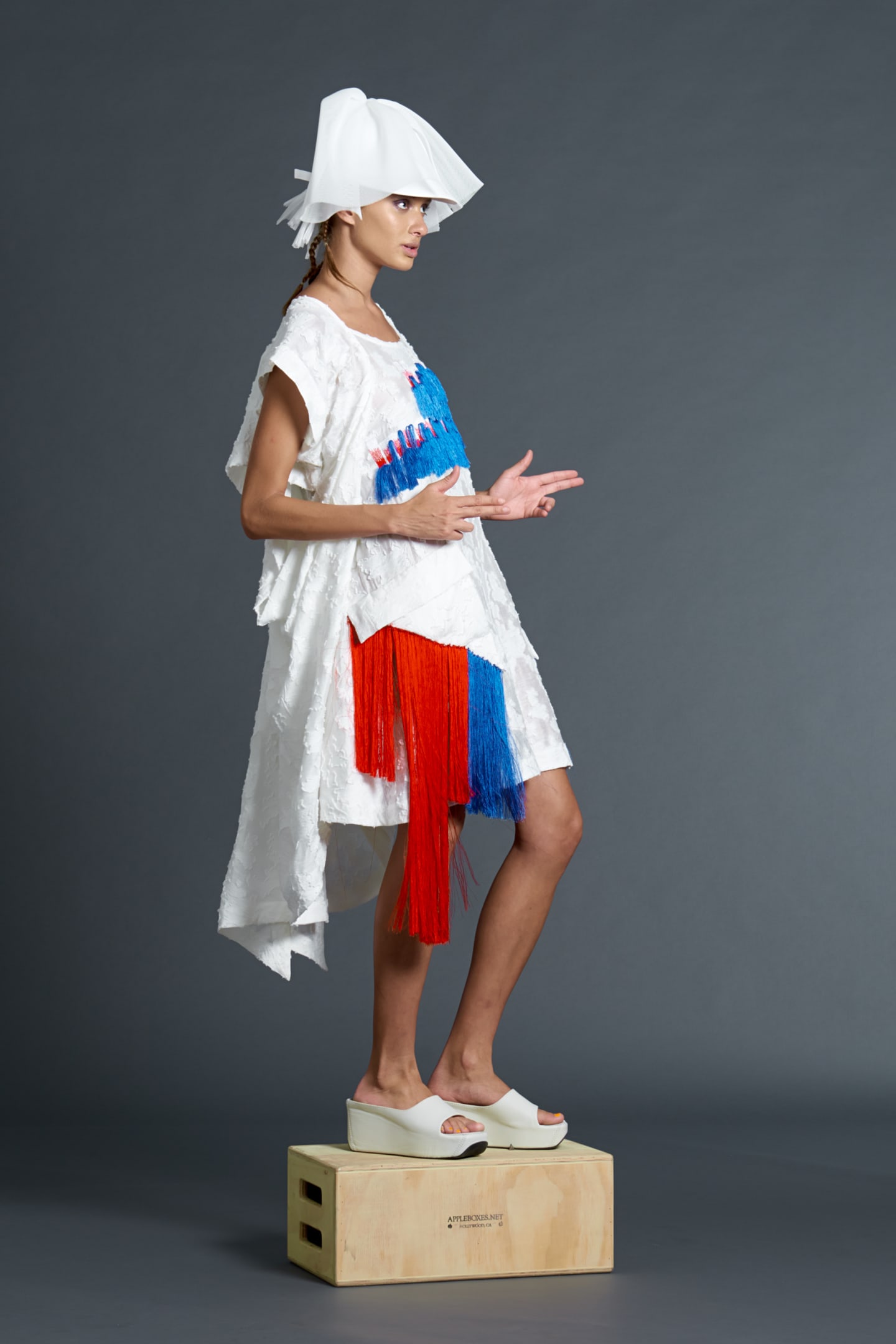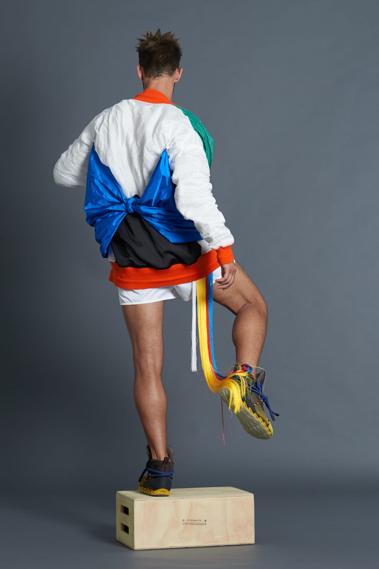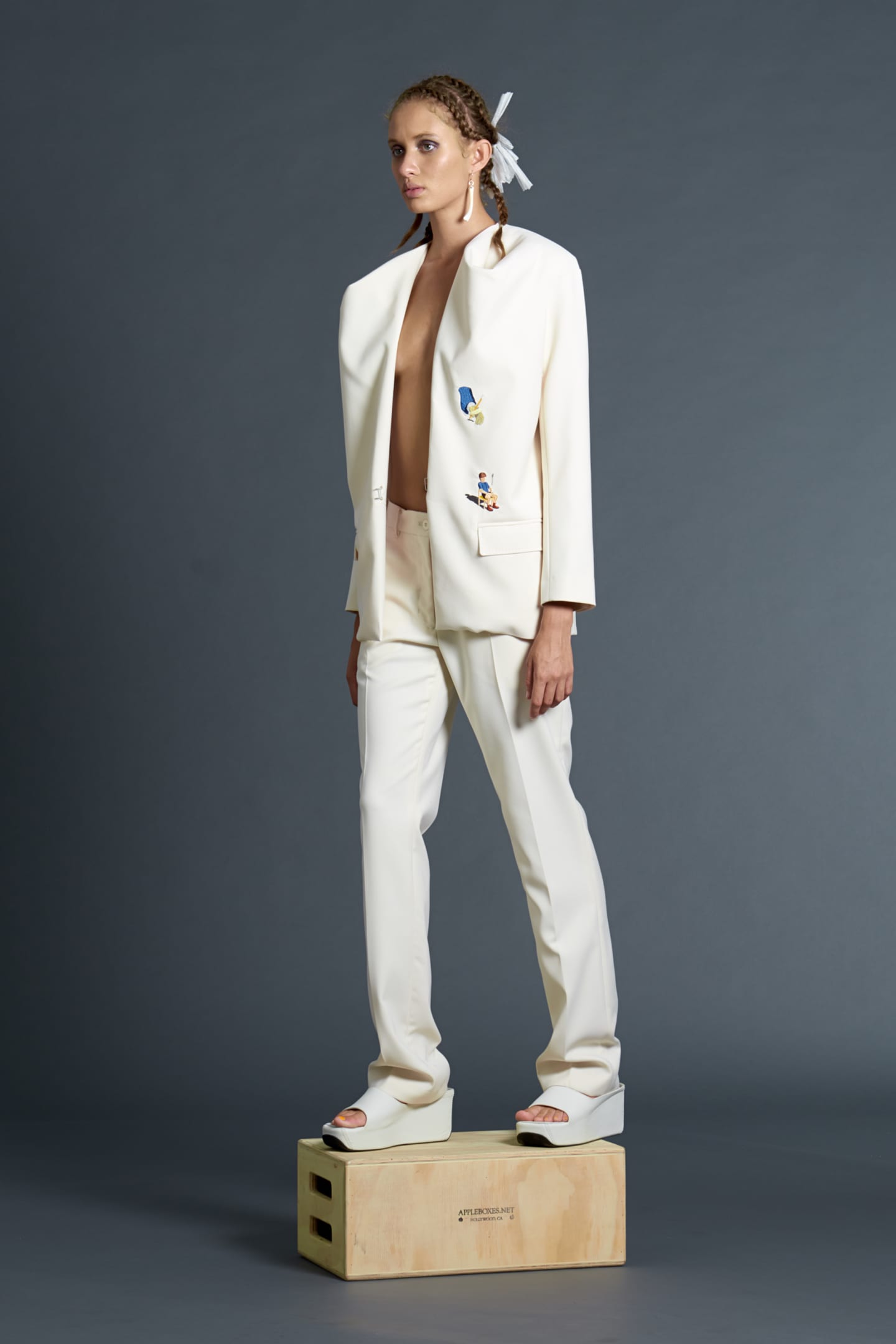 One of the first to precipitate the prodigious rise of bright colors, bold prints and graphic text after the minimalism of the 90's, Bernard Wilhelm's brilliant, demented spring collection is as strange and innovative as anything he's done before. The collection itself is like a bright, surreal cartoon you happen upon when you're watching TV really stoned at like 2am, and you can't tell if it's actually as fucked up as it seems. Wilhelm throws fabrics and colors together with abandon; the real unifying elements of the collection are in the details: the drape of a neckline, a dusting of fringe, kimono-inspired detailing. There are some sure fire conversation-starters in the mix here, especially one-shouldered silk dresses that bear the elaborately beaded slogan, "to accuse your exwife of snorting coke, press 1," and "America's Next Mop Todel" t-shirts. An accompanying press release is equally fiery, a free-form poem with lines like, "could Michelle Obama be pregnant? And by whom?" Click through the lookbook below to immerse yourself in Wilhelm's futuristic raver vision, then click here to see the even trippier lookbooks, but don't blame us if it feels like reality is slowly slipping away.