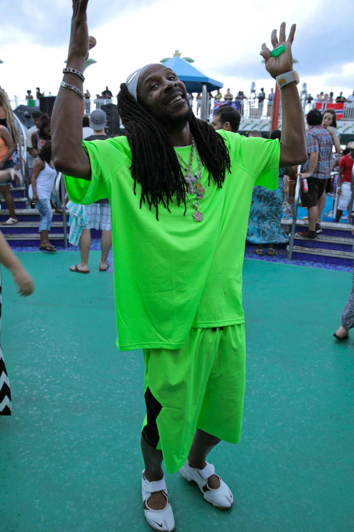 We're still sporting a serious tan since landing back from Damian Marley's inaugural Welcome To JamRock reggae cruise, which is an envious accessory in the increasingly colder days of fall. But before we plunge into the big chill, we can't help but recall the punchy island-ready style that reigned on board. We hit the main deck of the massive cruise liner to capture the best, brightest, and most irie looks during the five-day reggae extravaganza. Loads of red, gold and green, a serious serving of tie dye, and pot leaf prints ensued. Check out our fave folks below.