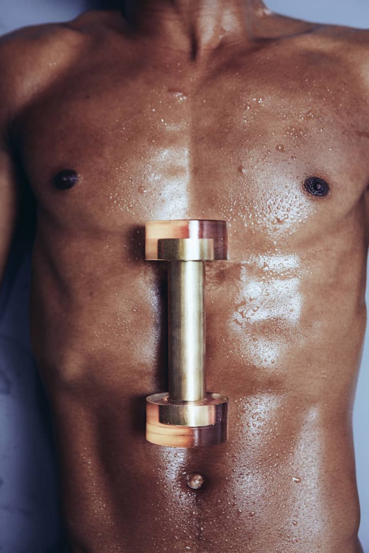 What's the deal with the translucent weights? JEWETT: The weights were conceived out of my resentment for exercise. My logic was that I hate the aesthetics of mainstream athletic wear—anything that isn't Y3 or cool Nike, basically. By making an object that I actually wanted to pick up and use, maybe I would get into the habit of exercising. When I explained this to my cousins who are actually dedicated athletes, their reply was: "That's so stupid it might work." Whether or not the weights function as workout equipment, making a functional, non-jewelry item was a breakthrough and has inspired a lot of plans for future design.