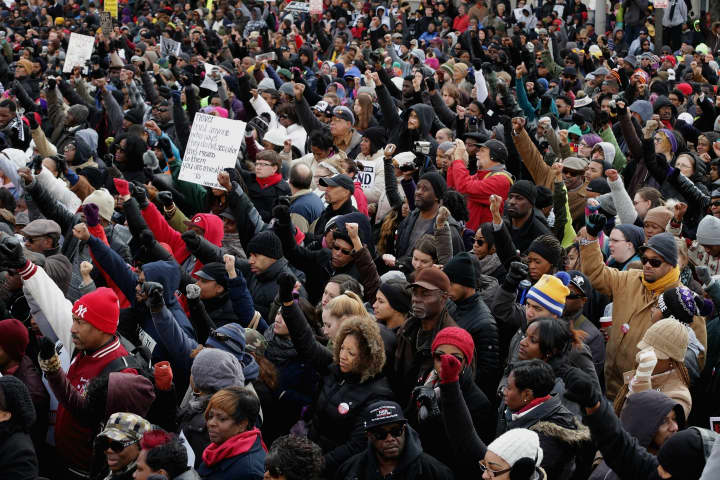 Yesterday, tens of thousands marched in peaceful protest against police brutality across the country in response to the killings of Michael Brown, Eric Garner, Tamir Rice and many other unarmed black men. Michael Brown Sr, pictured above, joined the nationwide protest at #MillionMarchDC. Meanwhile, Nas, Russell Simmons and Kevin Liles showed solidarity at #MillionMarchNYC, and other celebrities who posted their support on social media include Rihanna and Mary J. Blige. See a gallery of selected images from marches across the country below.