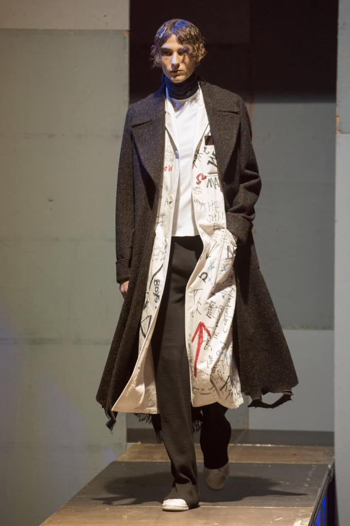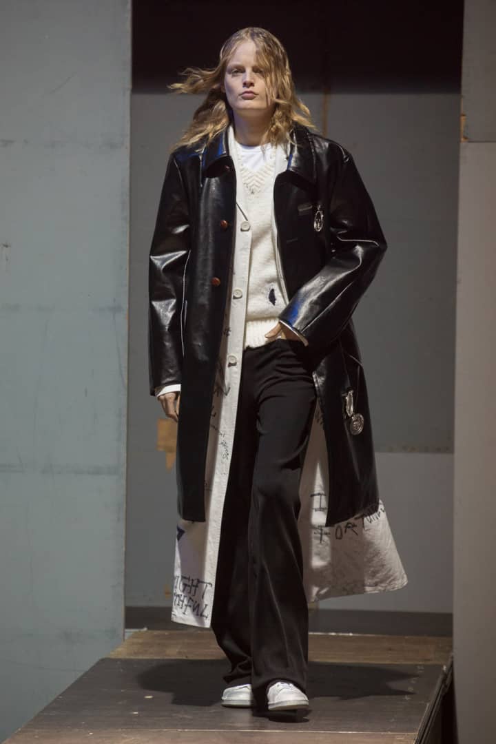 This week, Ian Connor—stylist, Tumblr it-boy, and A$AP crew member—made the rounds at Paris Men's Fashion Week shows. Tagging along with his mentor and self-proclaimed "father," A$AP Rocky, Connor met his fashion hero Raf Simons and, quite appropriately, fanned out; he told Simons that he had tattoos of his work all over his body. Simons—who presented a youth culture-inspired collection of graffiti-strewn trench coats, floor-grazing vests, and sleek turtlenecks—was familiar with Connor's literal body of work and seemed equally stoked. Below, check out Connor's recap of the life-affirming interaction, plus highlights from Simons' collection.